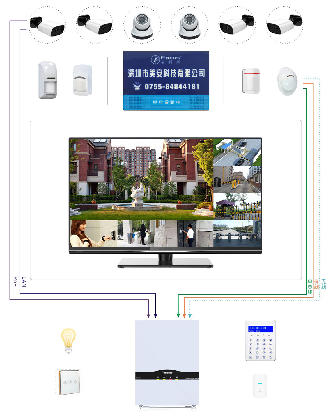 4有线+32个单总线防区+96个无线设备(含智能电器控制) |
